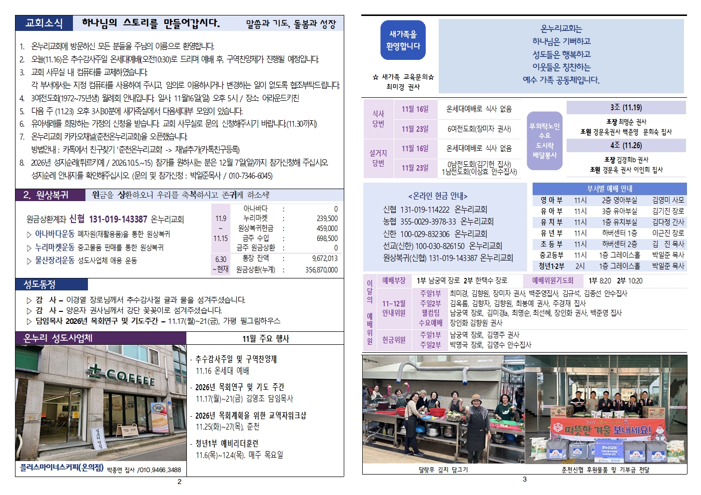 | 이전글 | 2025년 11월 23일 주일 주보 | 김진 | 2025.11.22 | 0 | 114 |