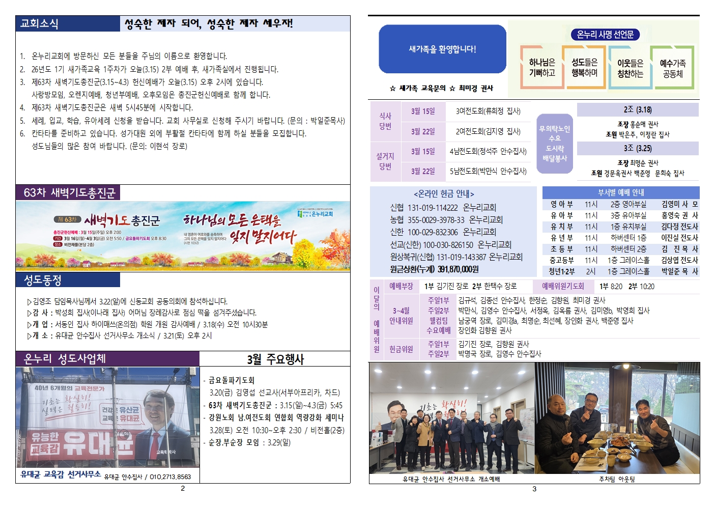 2026년 3월 15일 주일 주보