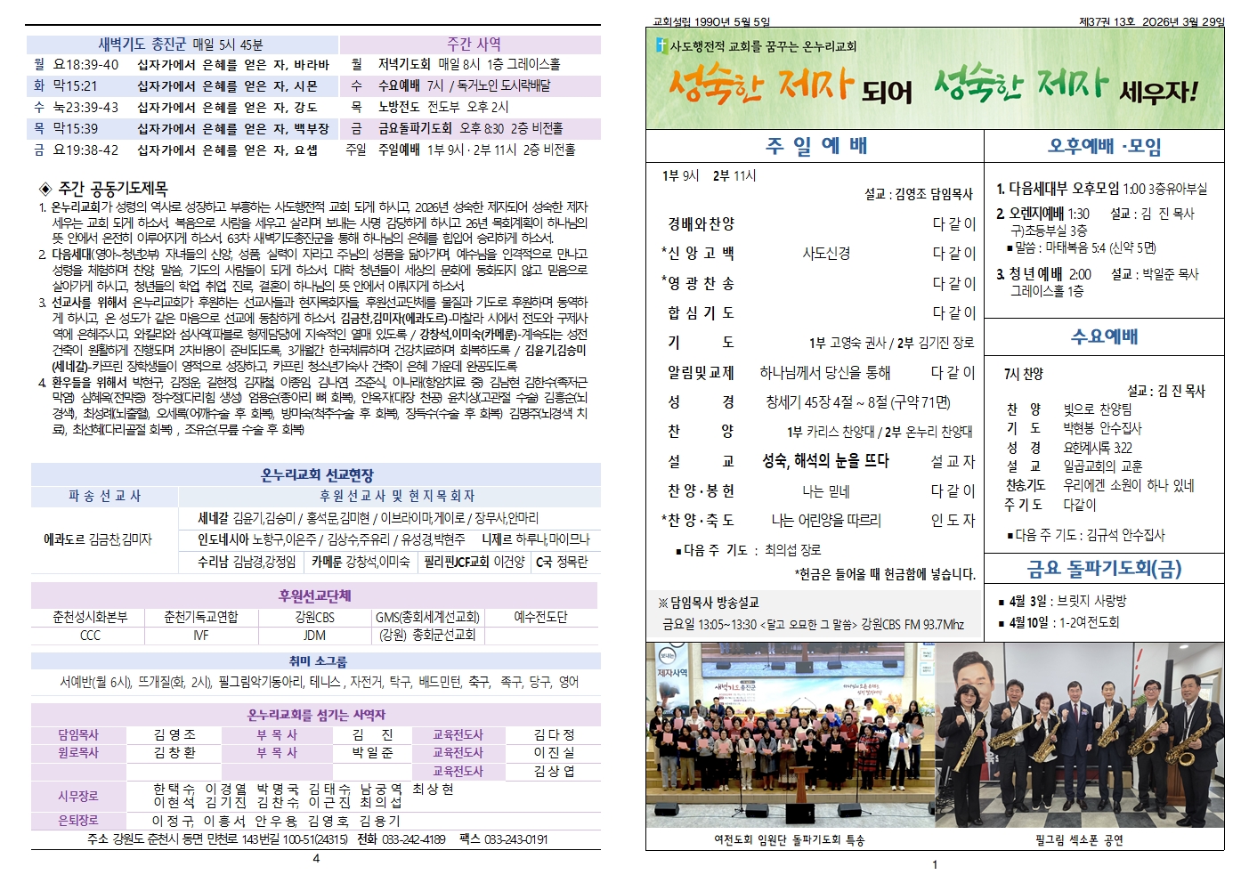 2026년 3월 29일 주일 주보